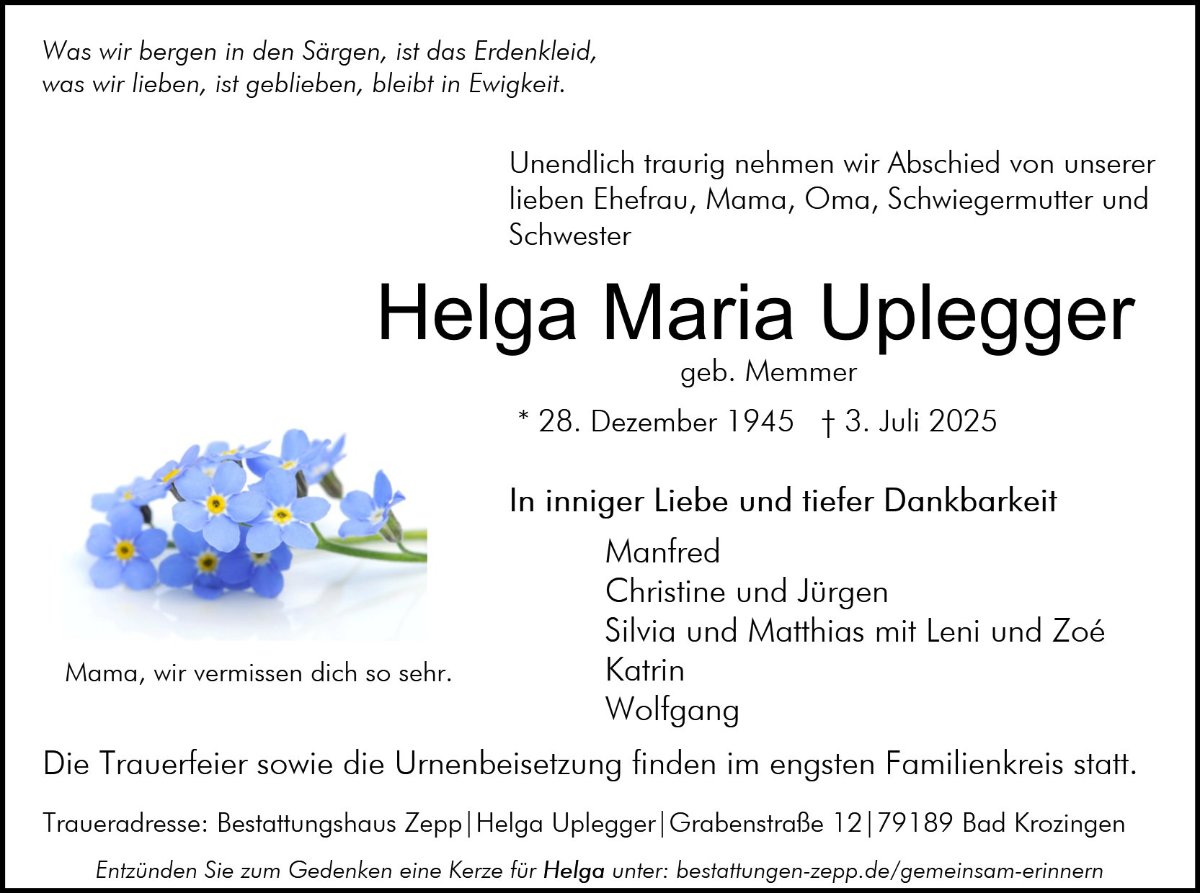 Helga Upleggergestorben am 3. Juli 2025